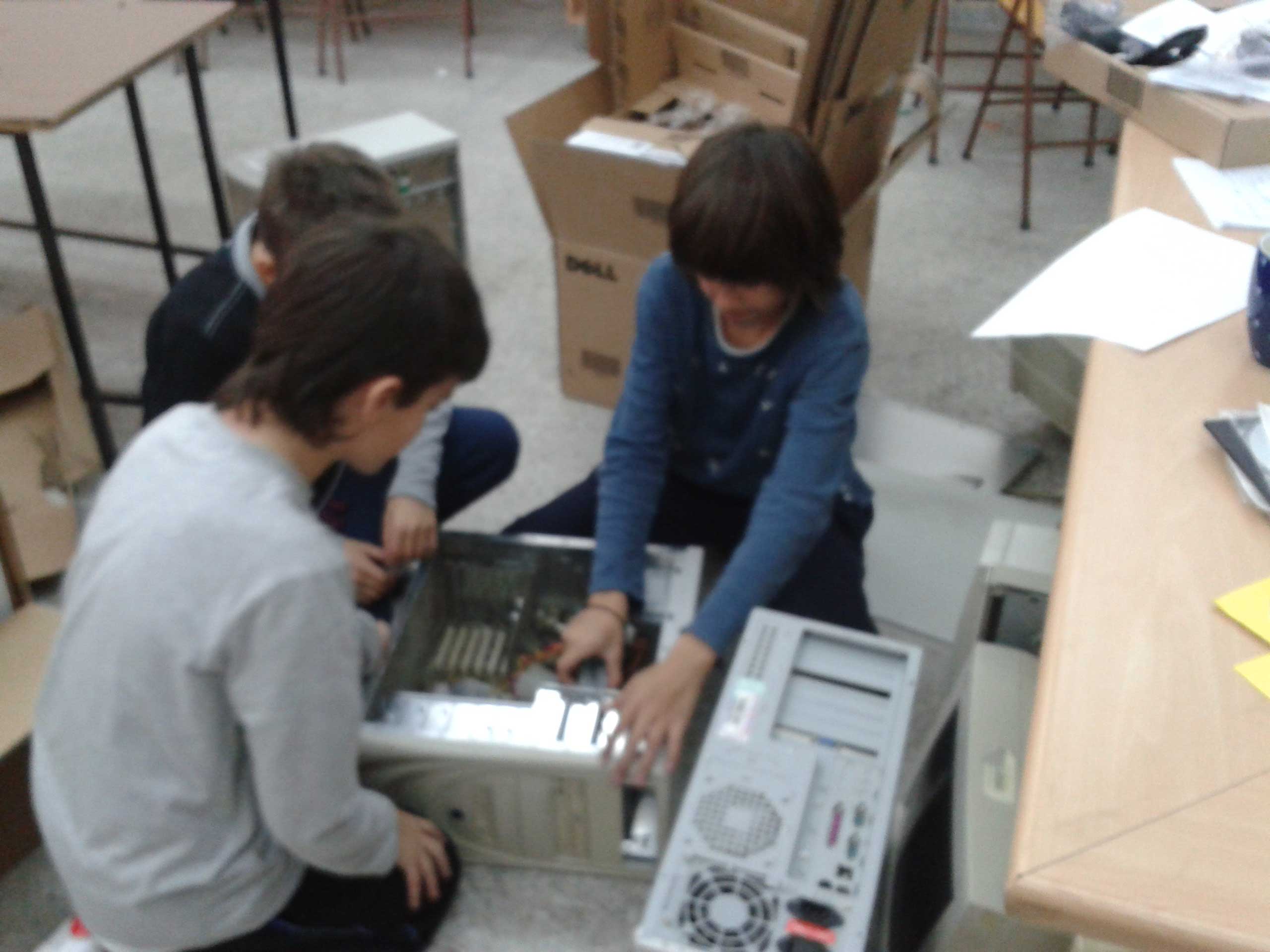 Το εργαστήριο υπολογιστών είχε παλαιά μηχανήματα που συχνά χάλαγαν. Από τα χαλασμένα μηχανήματα αφαιρέσαμε δίσκους, μνήμες CD-roms και τα τοποθετήσαμε σε άλλα που χρειάζονταν ανταλλακτικά.